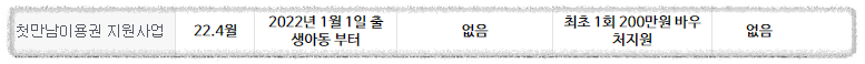 - 출생아동에게 첫 만남 이용권 200만 원을 지급하여 생애초기 아동양육에 따른 경제적 부담 경감