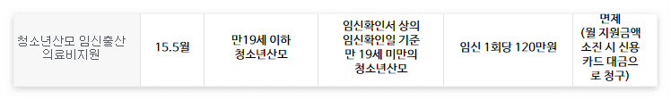 - 산전관리가 취약한 청소년 산모에게 임신, 출산 의료비를 지원함으로써 산모와 태아의 건강증진 도모