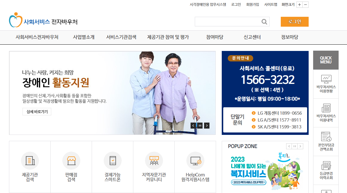 - 사회서비스전자바우처 홈페이지 이용자 편의성 향상을 위한 원격지원시스템입니다.