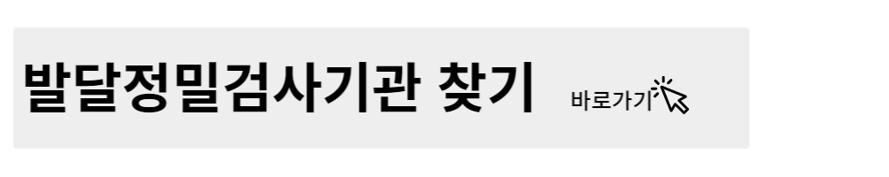 ※ 발달정밀검사기관 찾기 : 국민건강보험공단 → 건강 IN → 검진기관/병원 찾기 → 병(의) 원 정보 병(의) 원 찾기 → 특성별 병원 → 영유아발달정밀검사 의료기관 선택 후 검색 클릭
