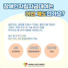 장애인자립자금대여사업은 소규모 창업, 출퇴근 시 필요한 자동차 구입비를 장기간 낮은 금리로 지원하는 제도입니다.